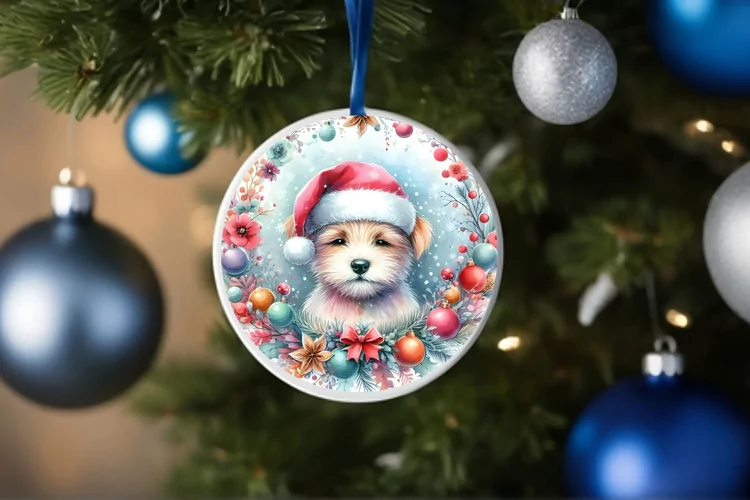 Colorful Pastel Dog Christmas Ornament PNG