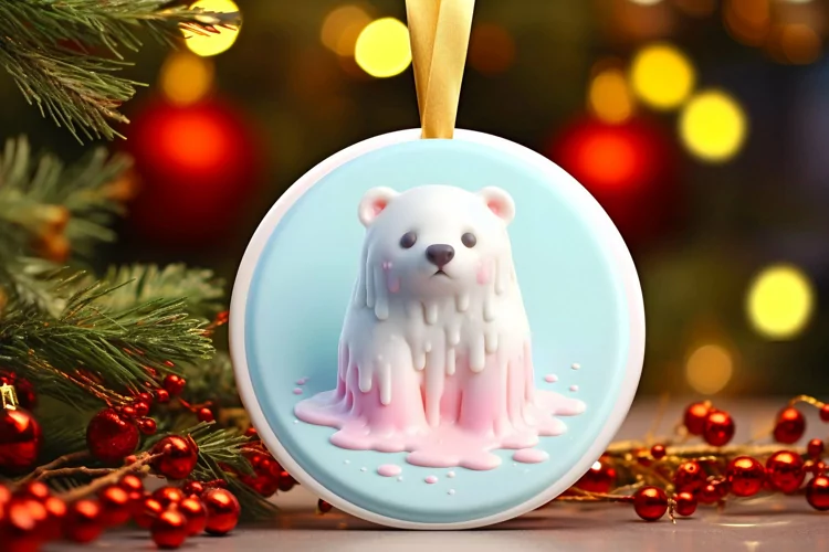 Ornament Round Sticker Christmas Winter Png Pastel Sublimation Polarbear 3dmartzipan