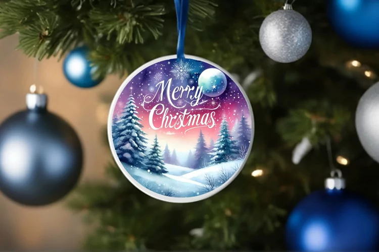 Merry Christmas Round Christmas Ornament Sublimation PNG example image 1