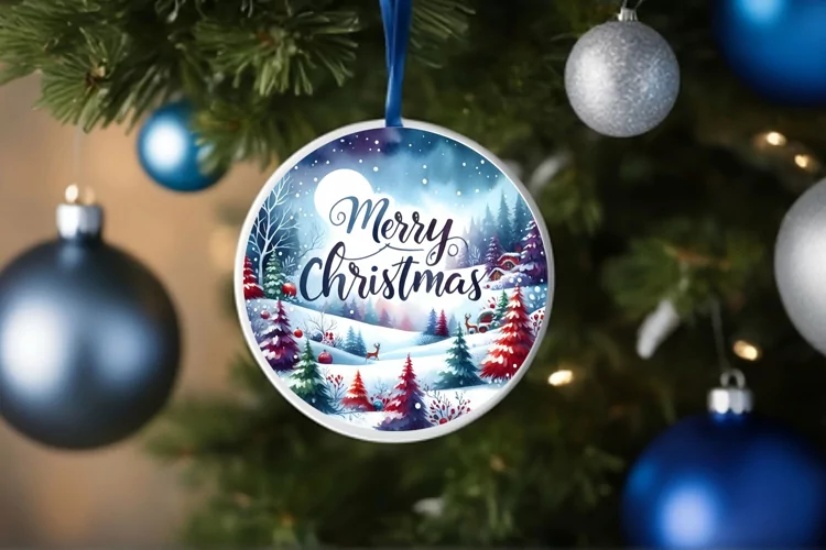 Watercolor Ornament Round Sticker Christmas Winter Png Sublimation Largetext Winterscene