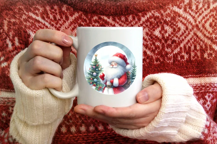 Watercolor Ornament Round Sticker Christmas Winter Png Santa Sublimation Centered
