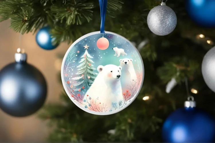 Colorful Polar Bear Round Ornament Sublimation PNG