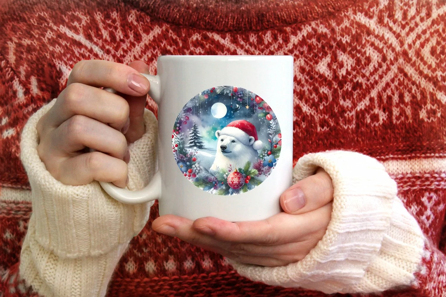 Watercolor Ornament Round Sticker Christmas Winter Vibrant Png Sublimation Polarbear