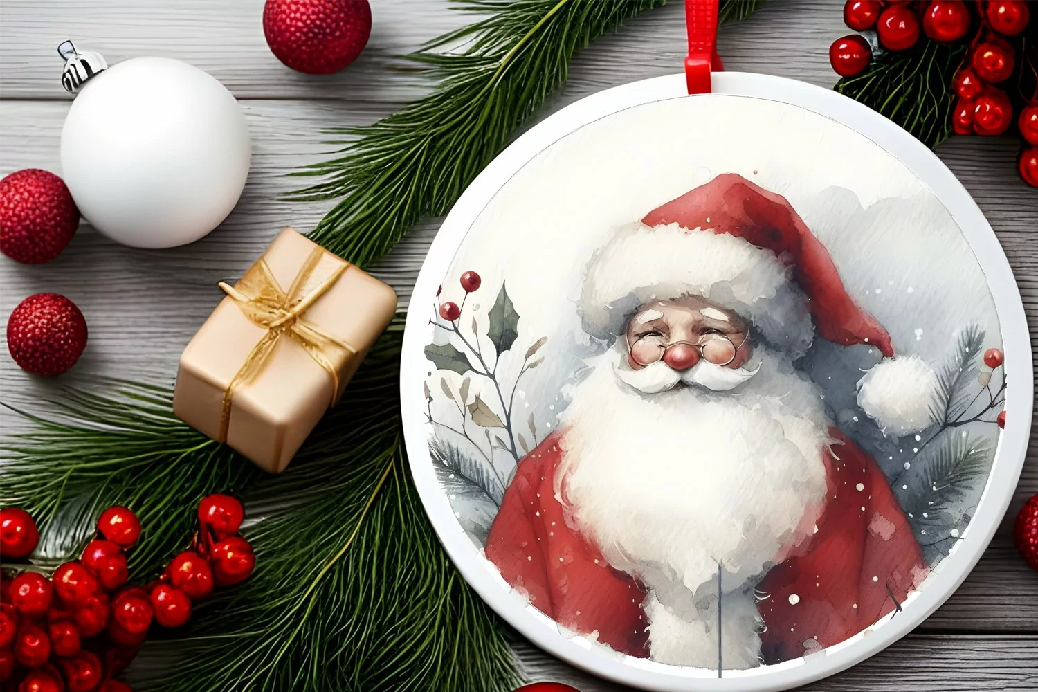 Watercolor Ornament Round Sticker Christmas Winter Png Santa Sublimation