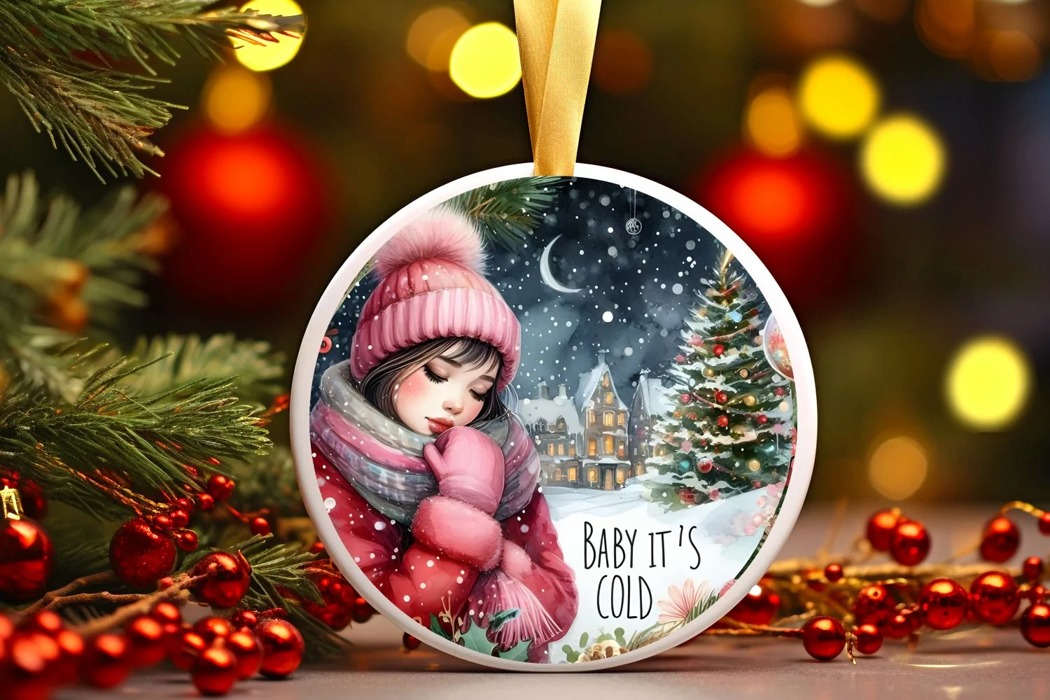 Text Watercolor Ornament Round Sticker Christmas Winter Png Sublimation Holidayblessings