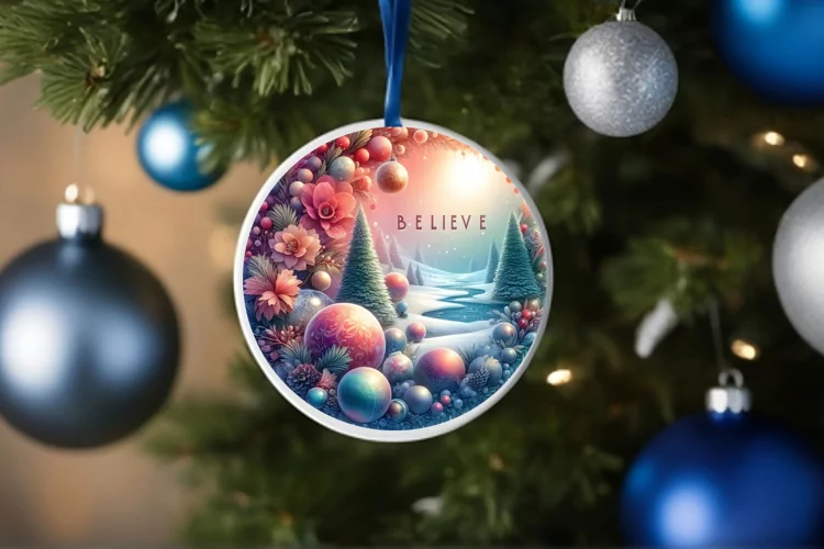 3D Round Christmas Ornament Sublimation PNG