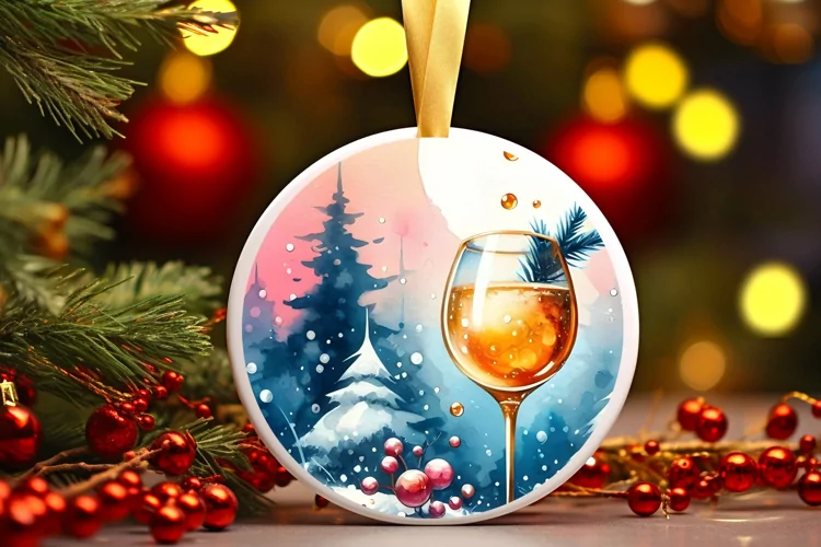 Ornament Round Sticker Christmas Melting Winter Png Sublimation Whitebackground Champaigneglass