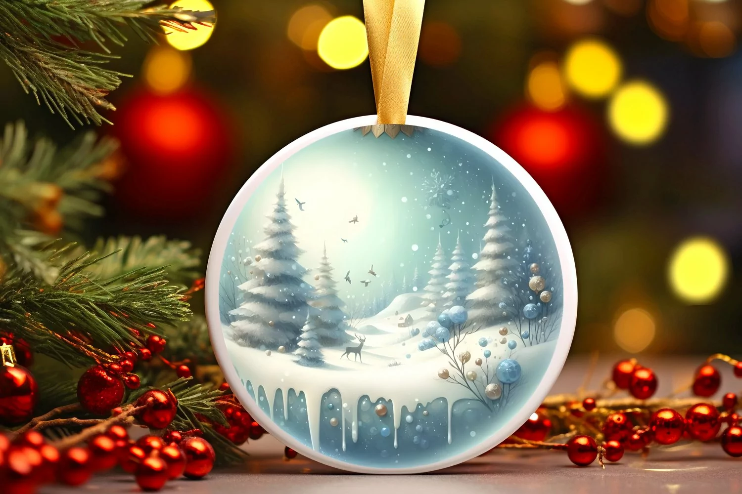 Ornament Round Sticker Christmas Winter Png Sublimation