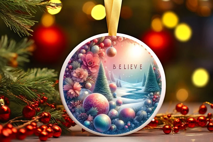 3D Round Christmas Ornament Sublimation PNG