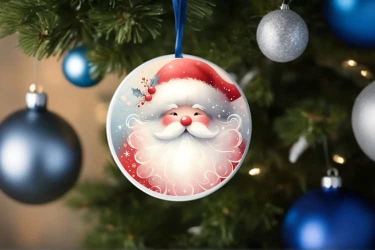 Ornament Simple Round Sticker Christmas Png Santa Sublimation Pastell