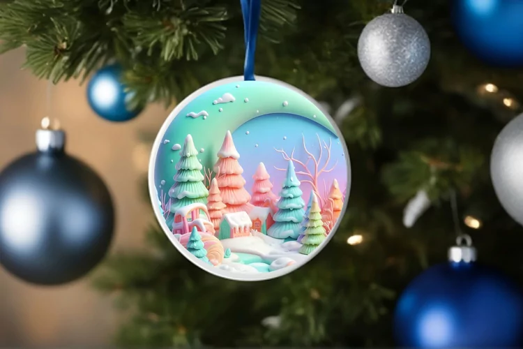 3d Ornament Round Sticker Christmas Winter Png Sublimation Martzipan Vibrantpastell