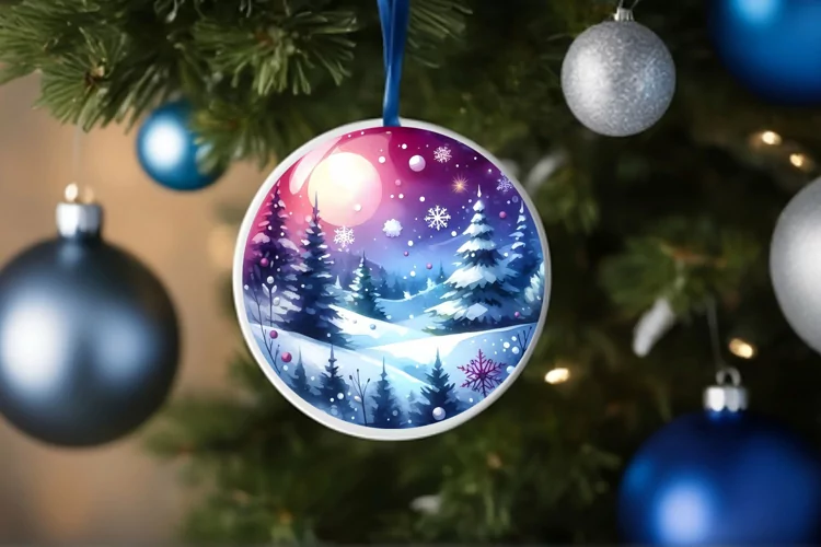 Watercolor 3d Ornament Round Sticker Christmas Winter Vibrant Png Sublimation