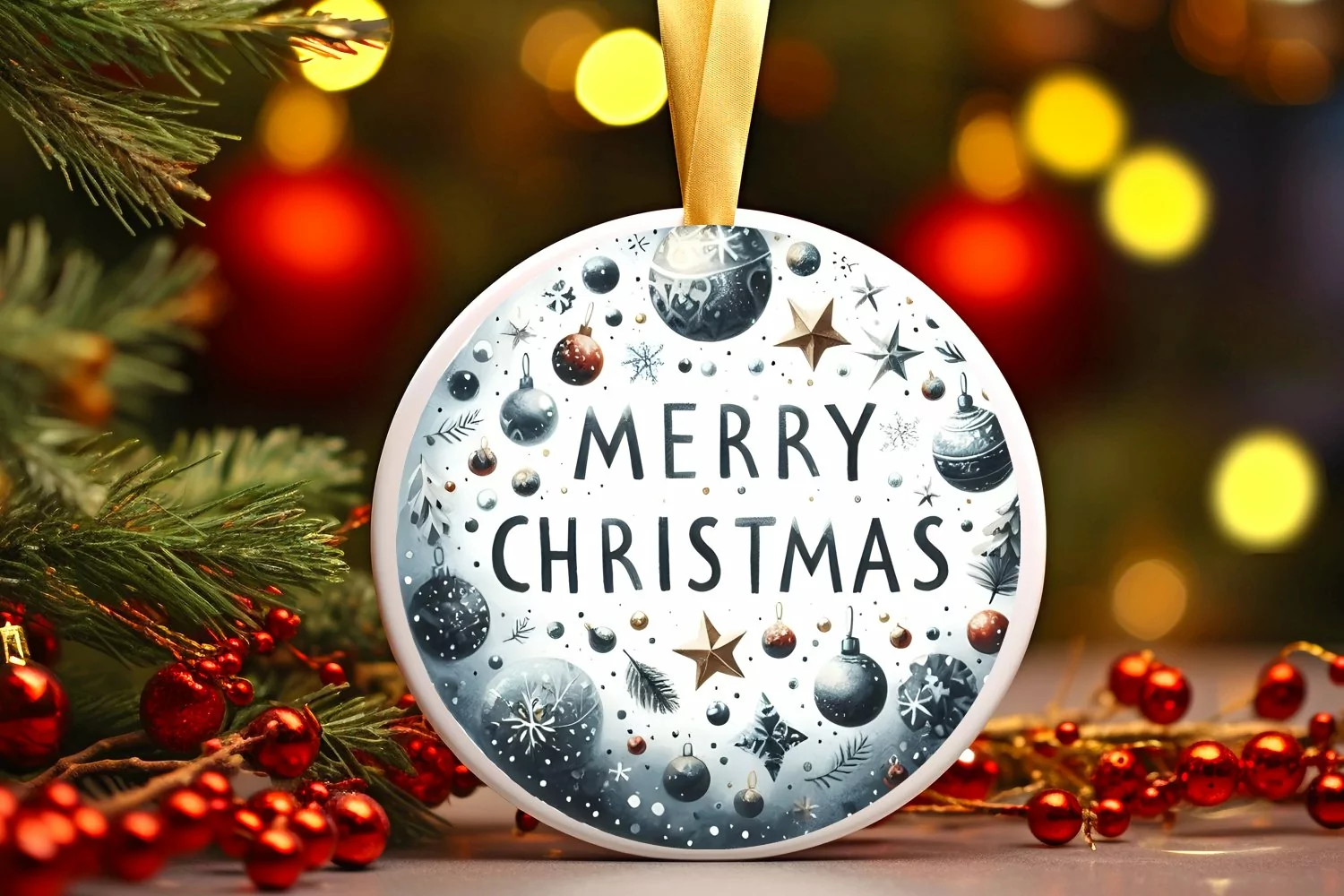 Ornament Round Sticker Christmas Winter Png Sublimation Whitebackground Noelementstouchingthecanvasedges Typetreatmentmerrychristmas