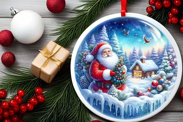 3d Ornament Round Sticker Christmas Winter Png Santa Sublimation