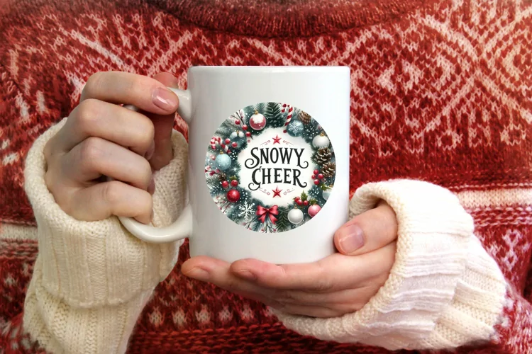Watercolor Ornament Round Sticker Christmas Winter Png Sublimation Snowycheer