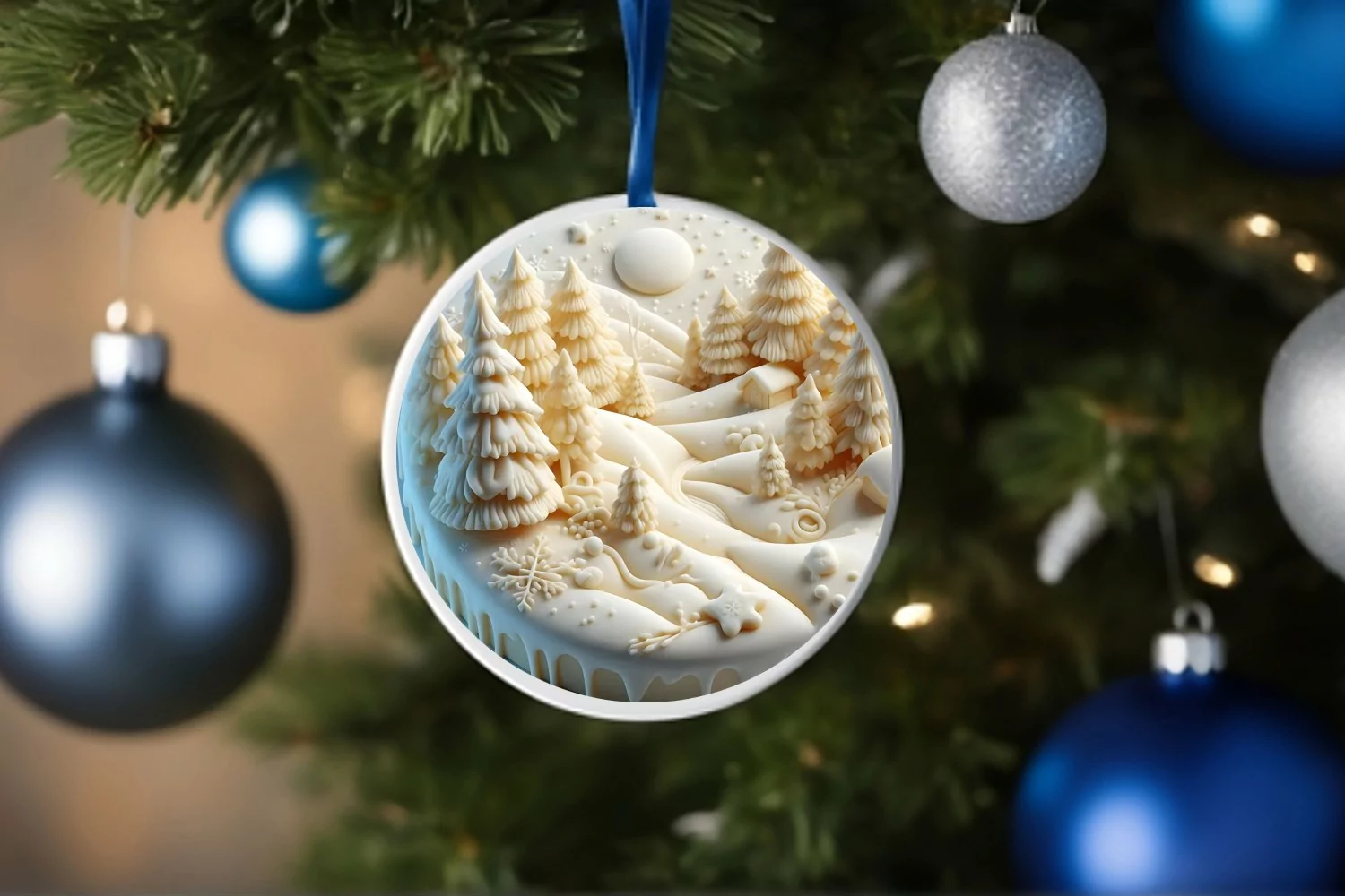 Similar Design Products to 3D Winter Scene with Depth Round Ornament Sublimation PNG
