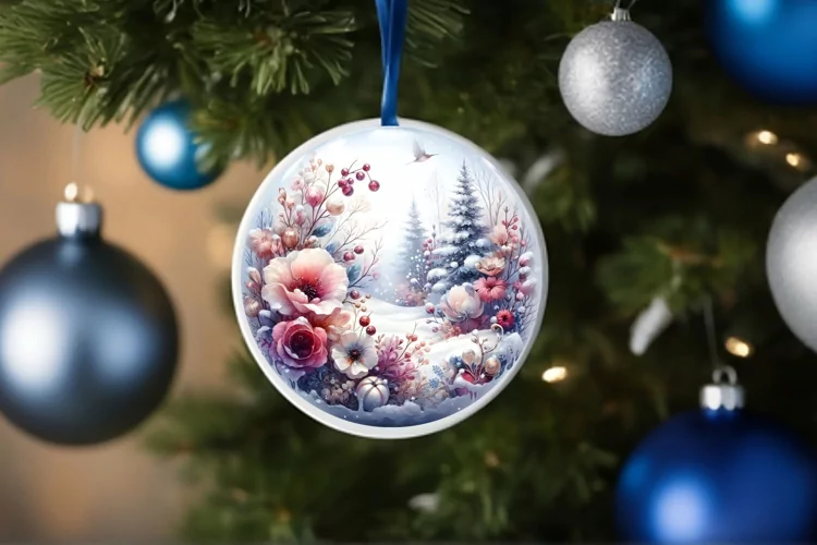 Ornament Round Sticker Christmas Flowers Winter Png Sublimation