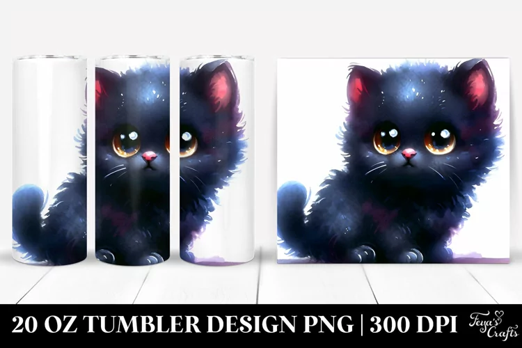 Similar Design Products to Watercolor Cute Baby Black Cat | 20 oz Tumbler
