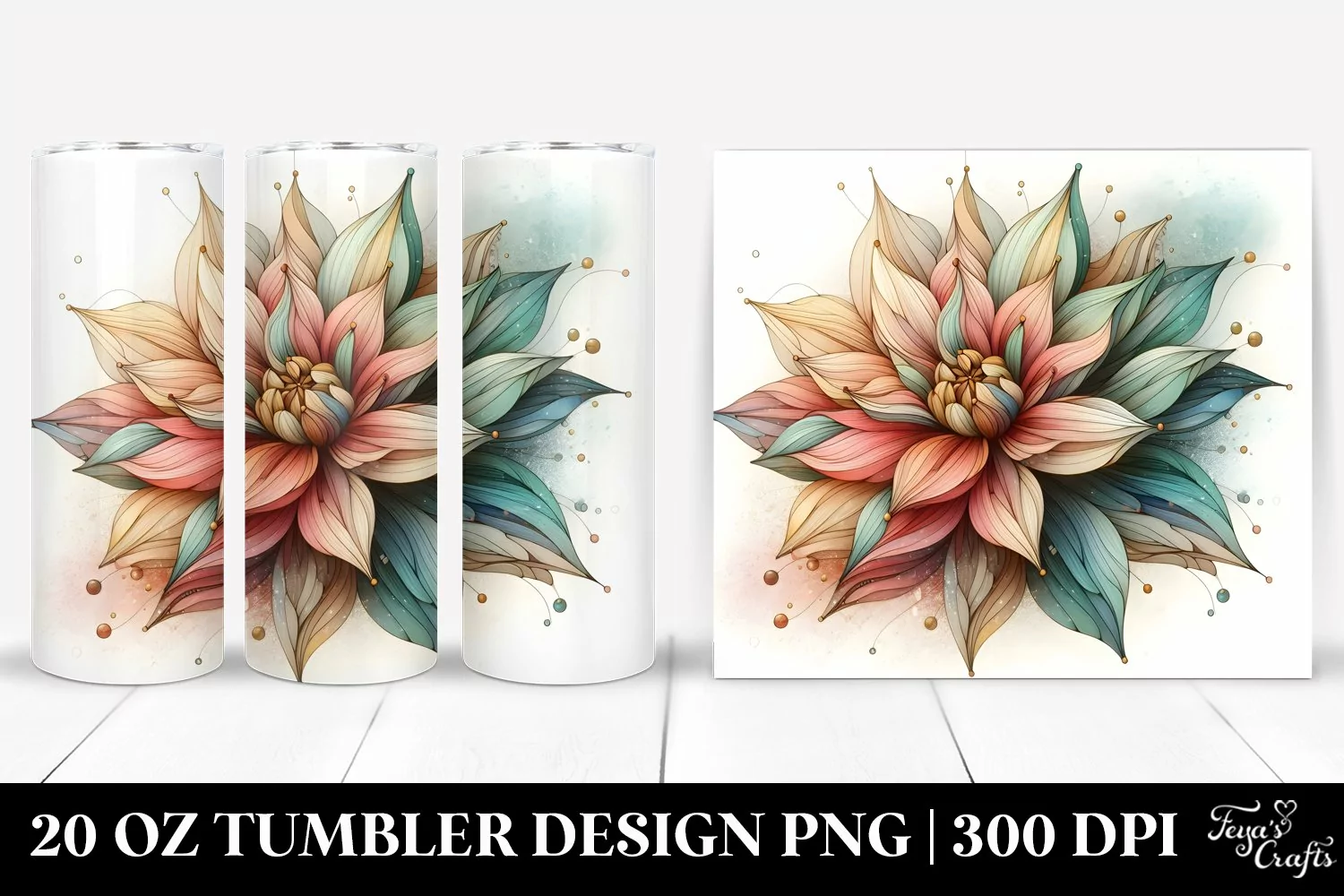 Wooden Abstract Clipart Dahlia Png Pastel Glass Sublimation Tumbler Stainedglass