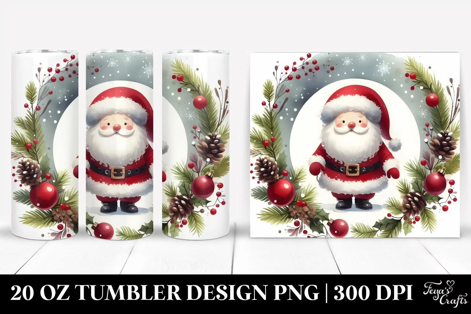 Image Watercolor Simple Round Christmas Clipart Png Santa Sublimation Tumbler