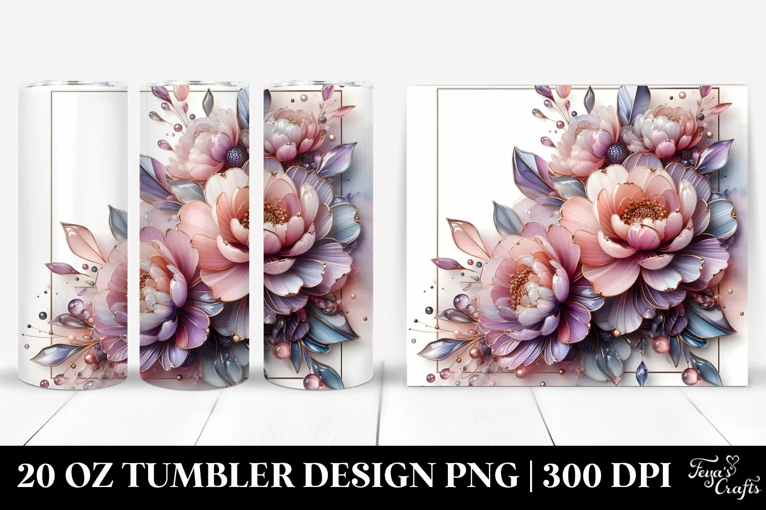 Glossy Abstract Clipart Peonies Png Pastel Glass Metallic Sublimation Tumbler
