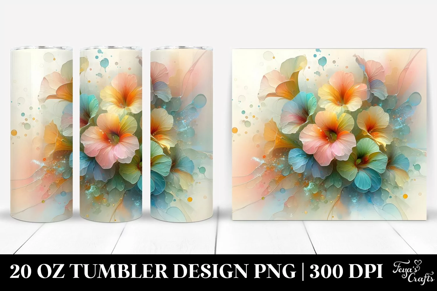 Watercolor Shiny Abstract Clipart Png Pastel Glass Sublimation Tumbler Nasturtium