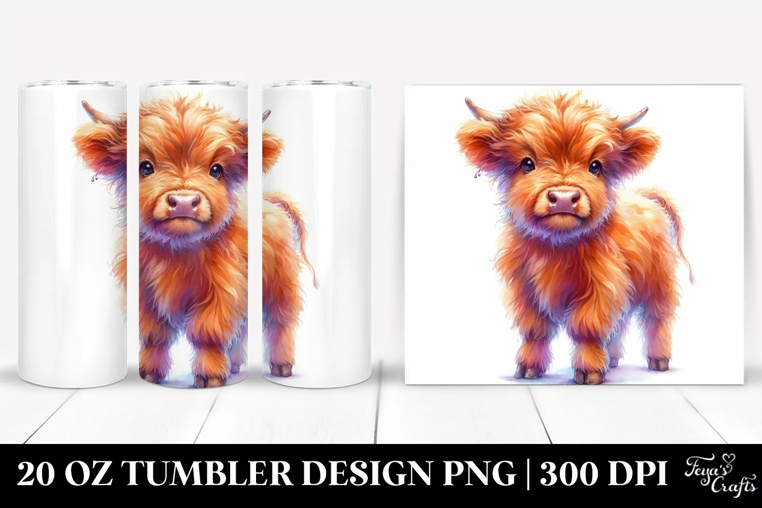 Watercolor Drawing Clipart Vibrant Png Sublimation Tumbler Jeffkoons Babyhighlandcow