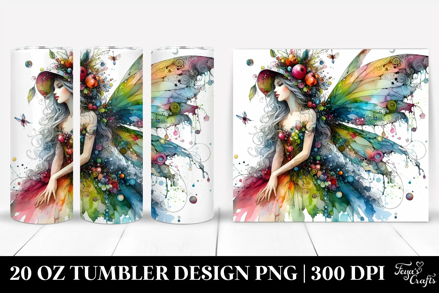 Watercolor Fairy Clipart Vibrant Png Sublimation Tumbler Dressed Jeffkoons