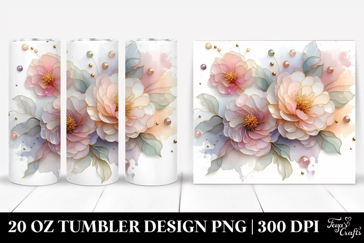 Watercolor Shiny Abstract Clipart Peonies Png Pastel Glass Sublimation Tumbler