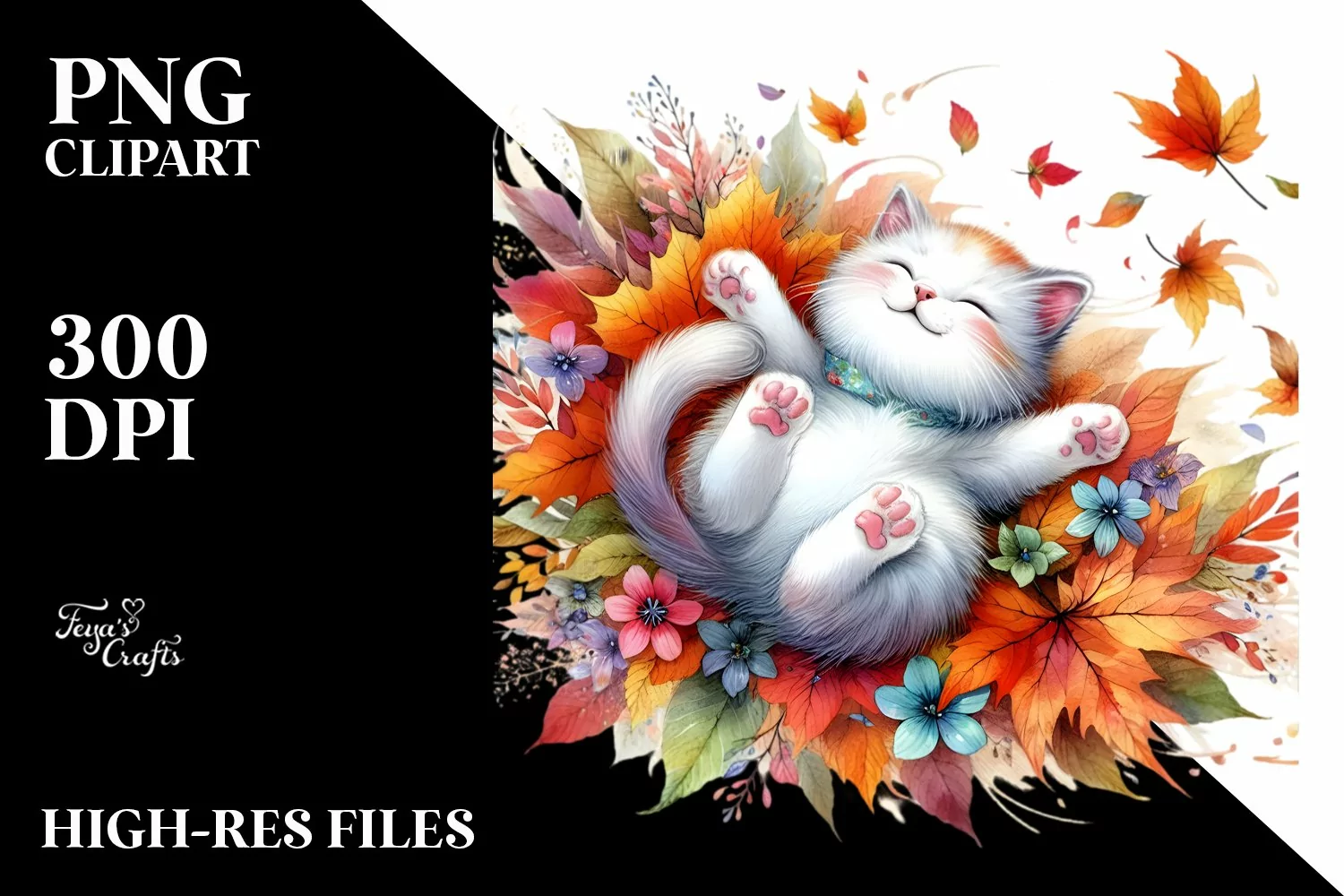 Colorful Autumn Cat PNG example image 1