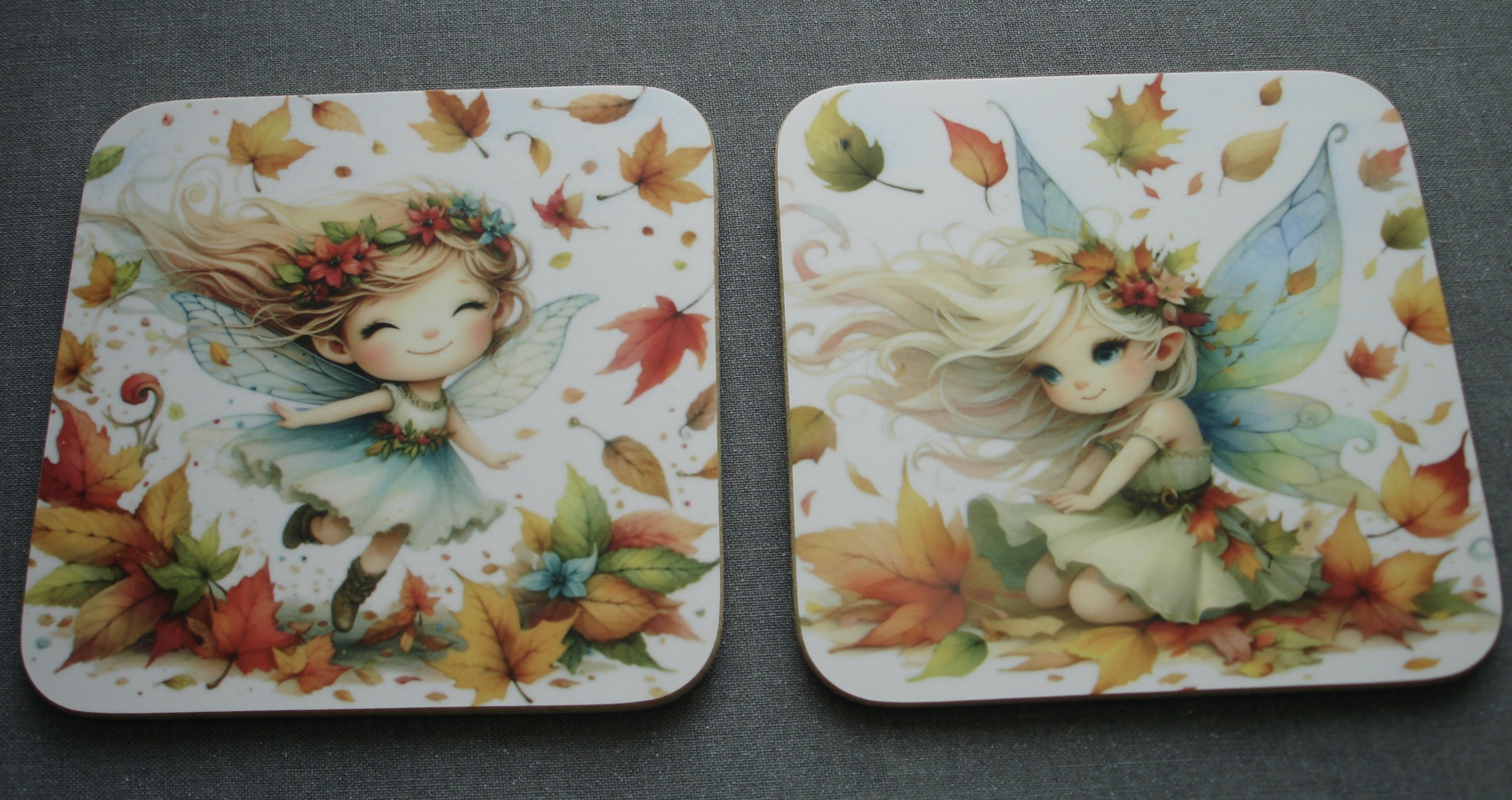 Autumn colours and such a cute fairy. I was asked if I could put fairies onto coasters for my stall. Answer - definitely.