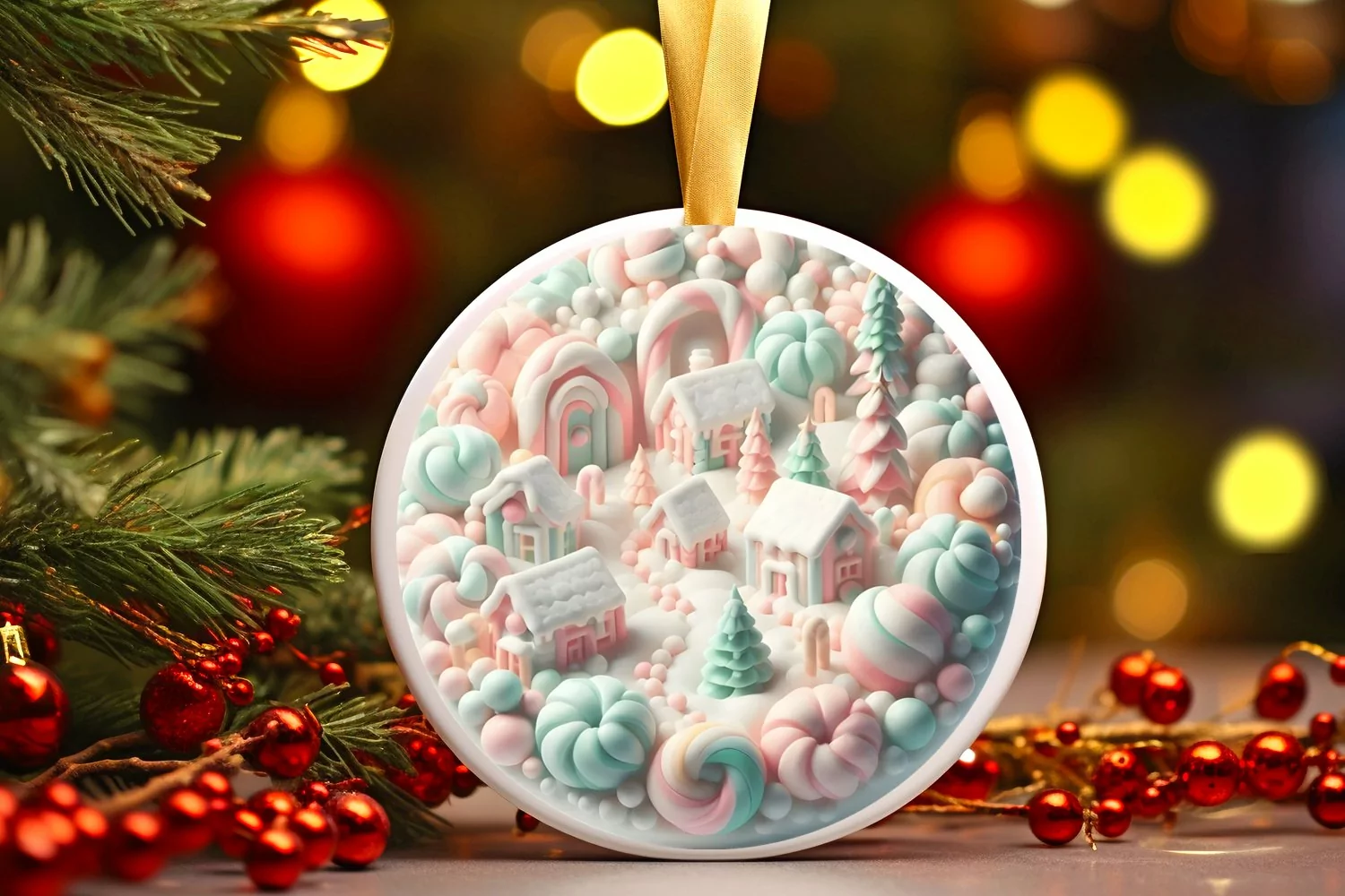 Ornament Round Sticker Christmas Winter Png Pastel Sublimation Winterscene Meltingcandy
