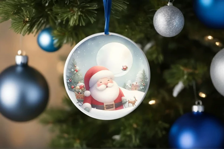 Ornament Simple Round Sticker Christmas Winter Png Santa Sublimation Centered