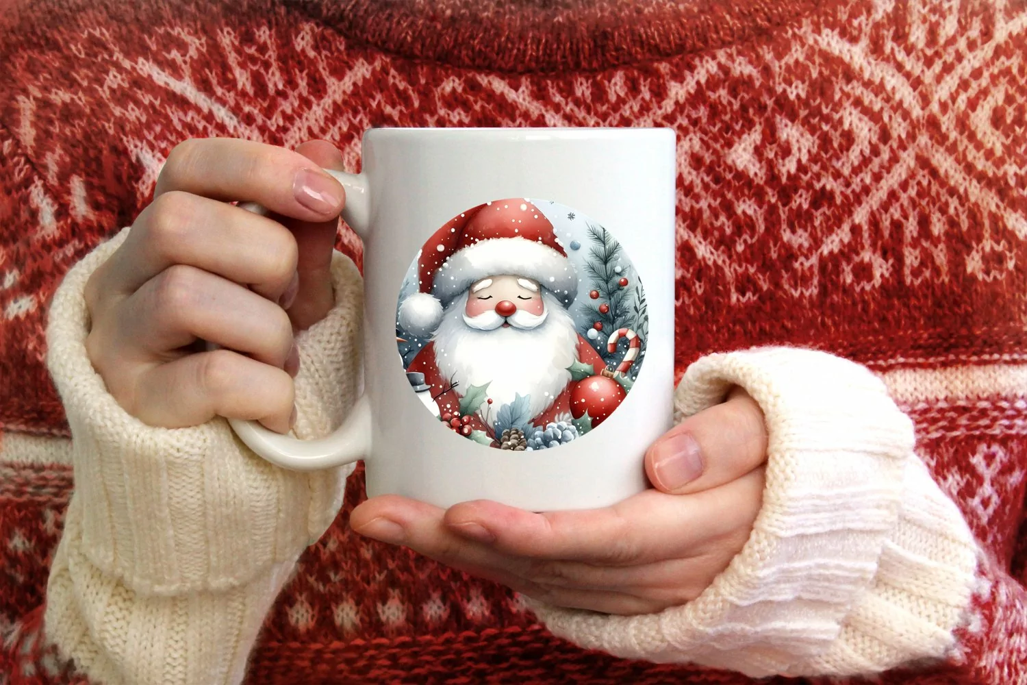 Watercolor Ornament Round Sticker Christmas Winter Png Santa Sublimation