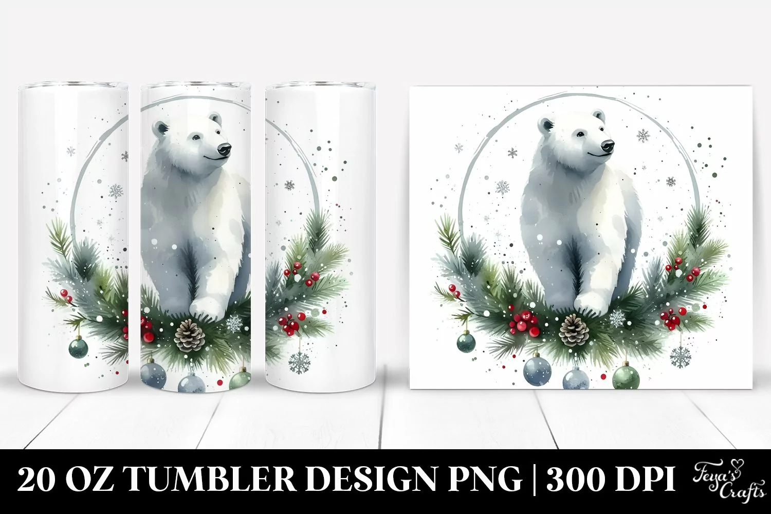 Similar Design Products to Watercolor Christmas Image Featuring Polar Bear | 20 oz