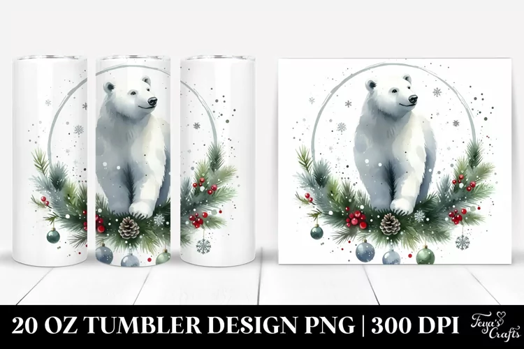 Watercolor Christmas Image Featuring Polar Bear | 20 oz example image 1