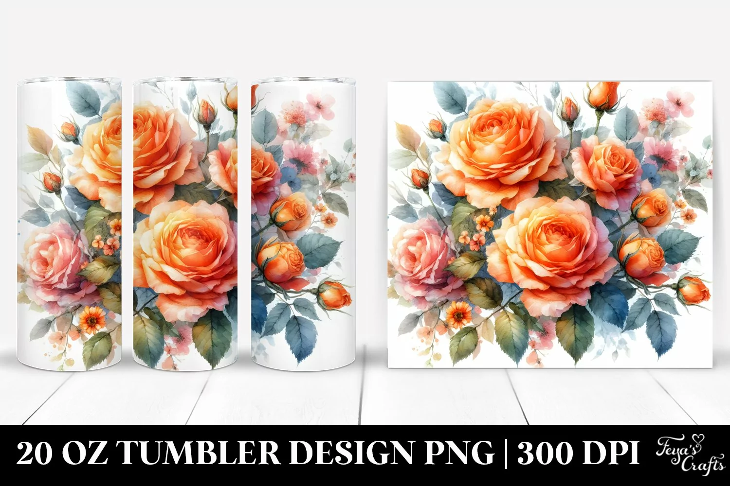 Clipart Vibrant Png Sublimation Tumbler Washedwatercolor Orangeroses Glossypetals