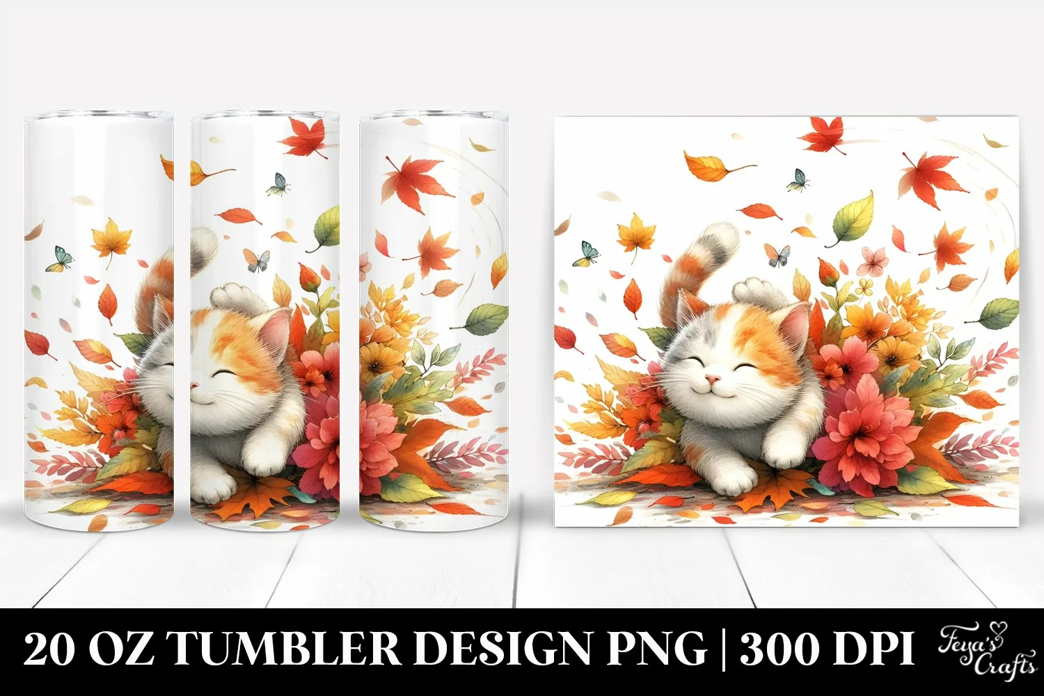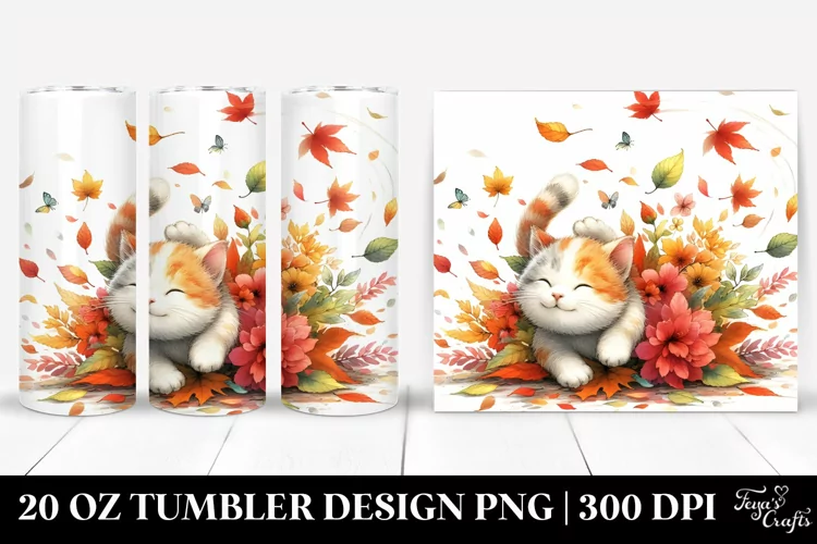 Clipart Png Wind Sublimation Tumbler Whitebackground Tumbling Autumnleaves Colorfulwatercolor Cutecat
