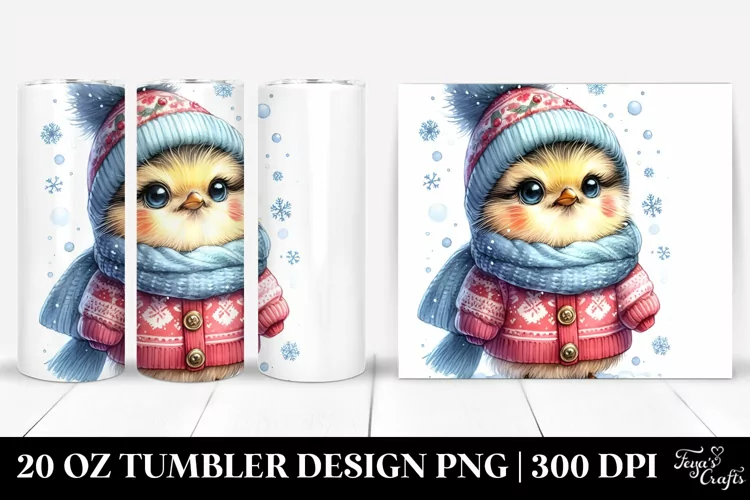 Watercolor Cute Clipart Png Sublimation Tumbler Bigeyes Babybird Winterclothes