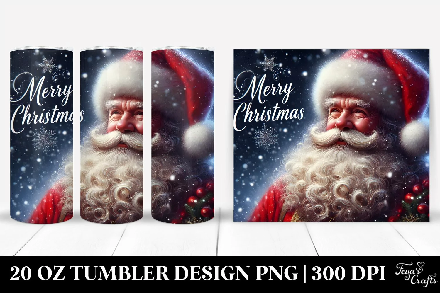 Santa Portrait Merry Christmas Tumbler Design | 20 oz example image 1