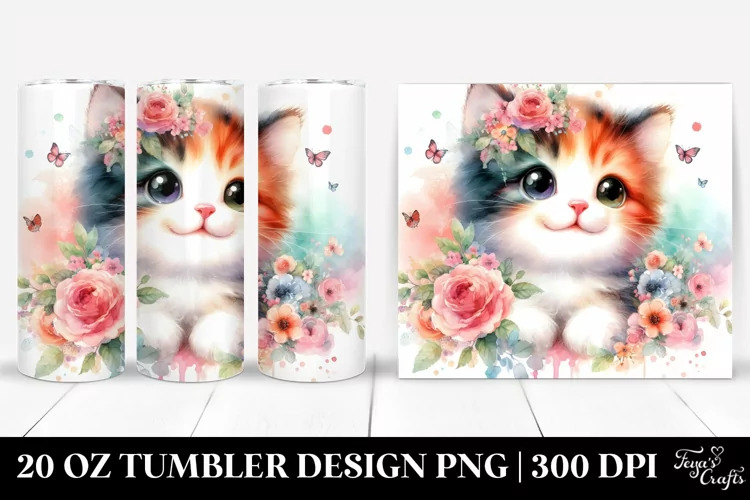 Colorful Cute Cat Tumbler Design | 20 oz Tumbler example image 1