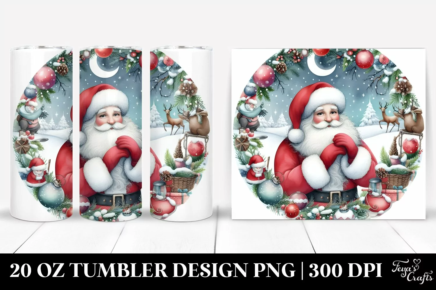 Watercolor Round Christmas Clipart Png Santa Sublimation Tumbler Whitebackground Centered