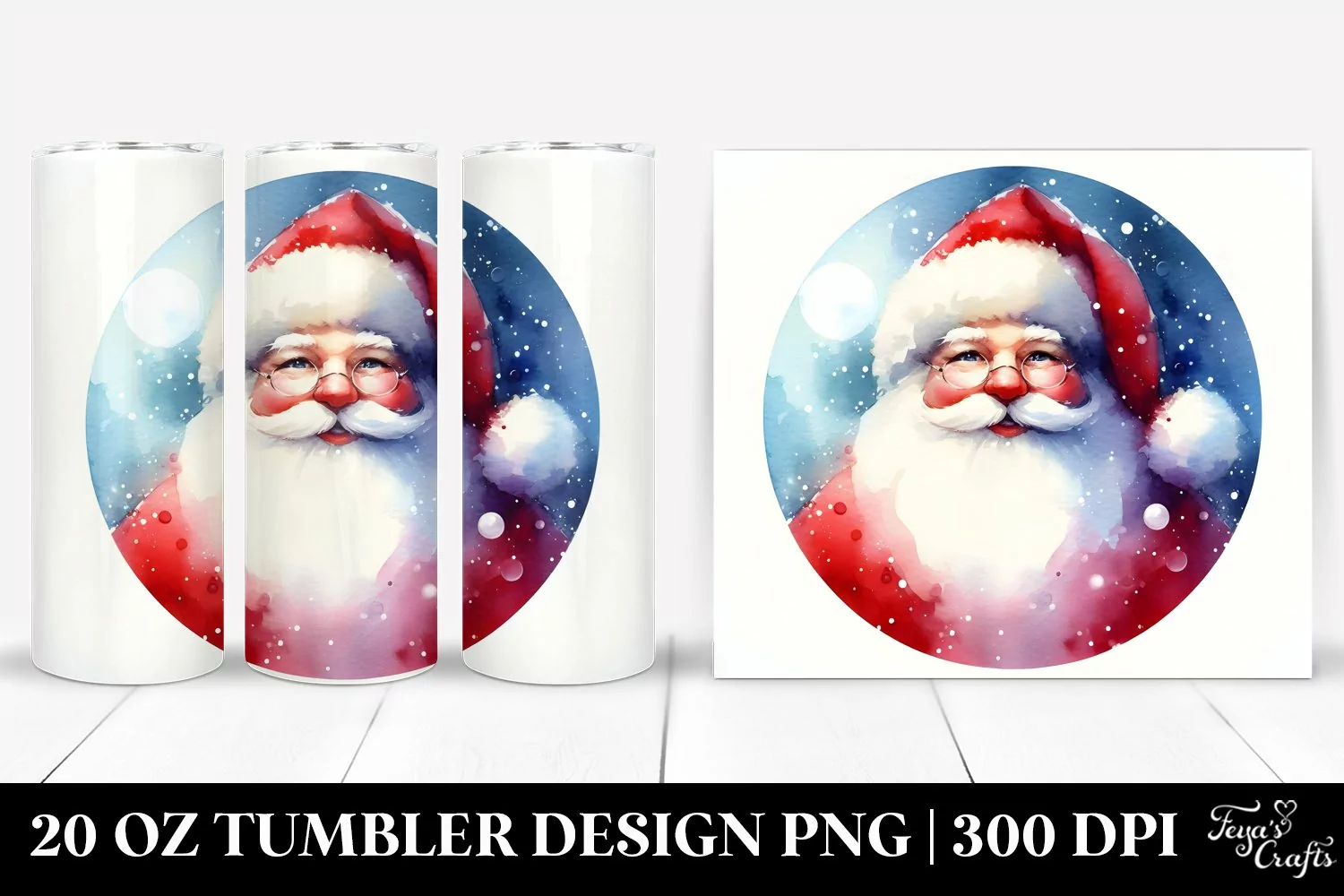 Vibrant Christmas Santa Watercolor | 20 oz Tumbler example image 1