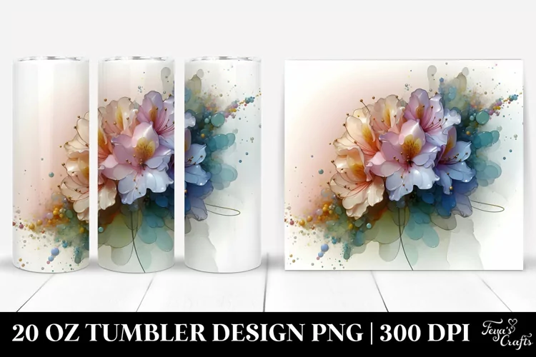 3d Glossy Golden Abstract Clipart Png Glass Rhododendron Sublimation Tumbler