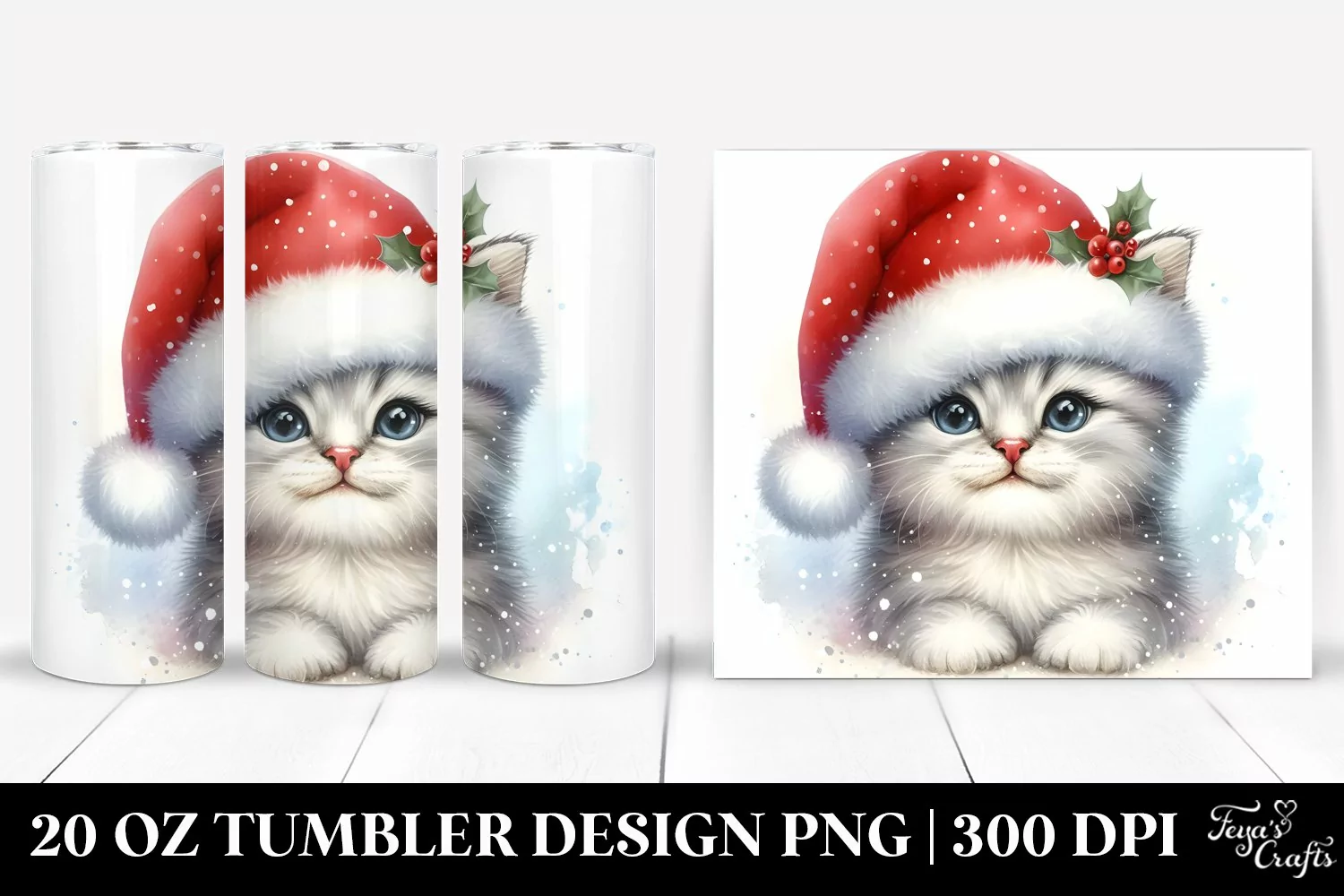 Image Watercolor Animals Cute Clipart Png Sublimation Tumbler Santahat Babycat