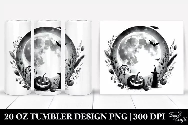 Vintage Simple Halloween Clipart Png Sublimation Tumbler Fullmoon Washedwatercolor