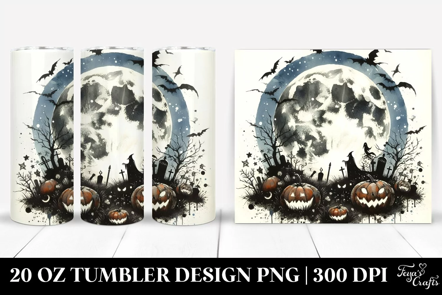 Vintage Simple Halloween Clipart Png Sublimation Tumbler Fullmoon Washedwatercolor