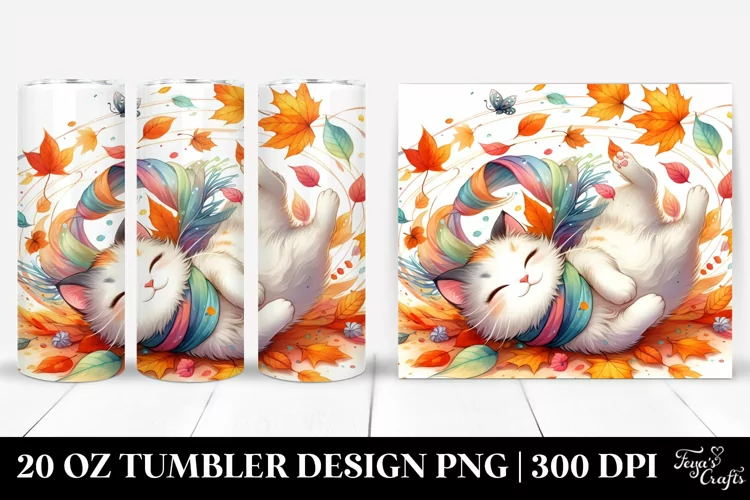 Watercolor Colorful Clipart Png Wind Sublimation Tumbler Autumnleaves Cutecat