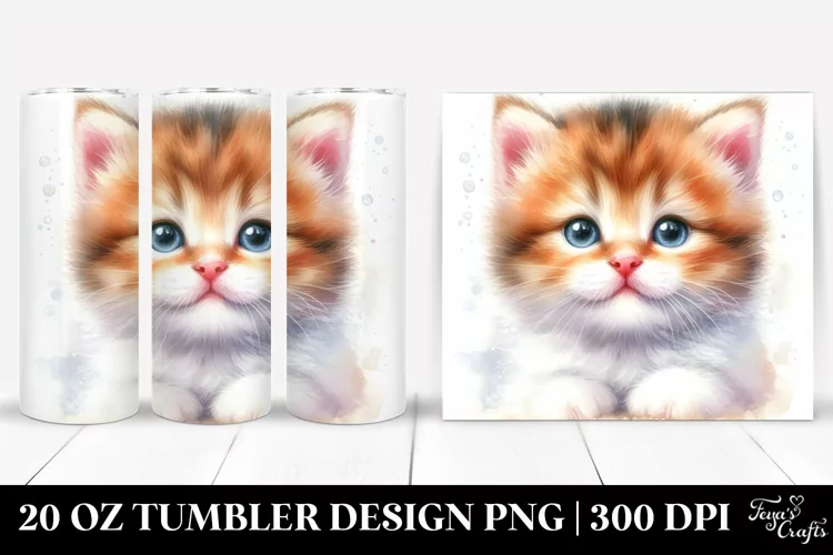 Cute Baby Cat Portrait in Watercolor | 20 oz Tumbler example image 1