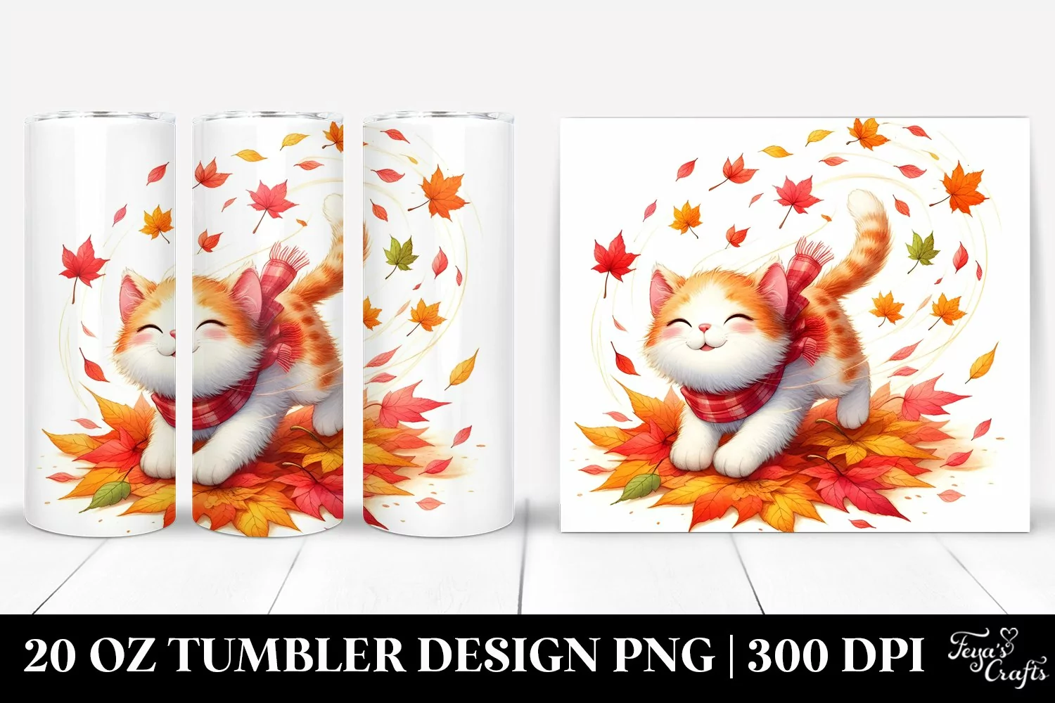 Similar Design Products to Colorful Cat Tumbling with Autumn Leaves | 20 oz Tumbler